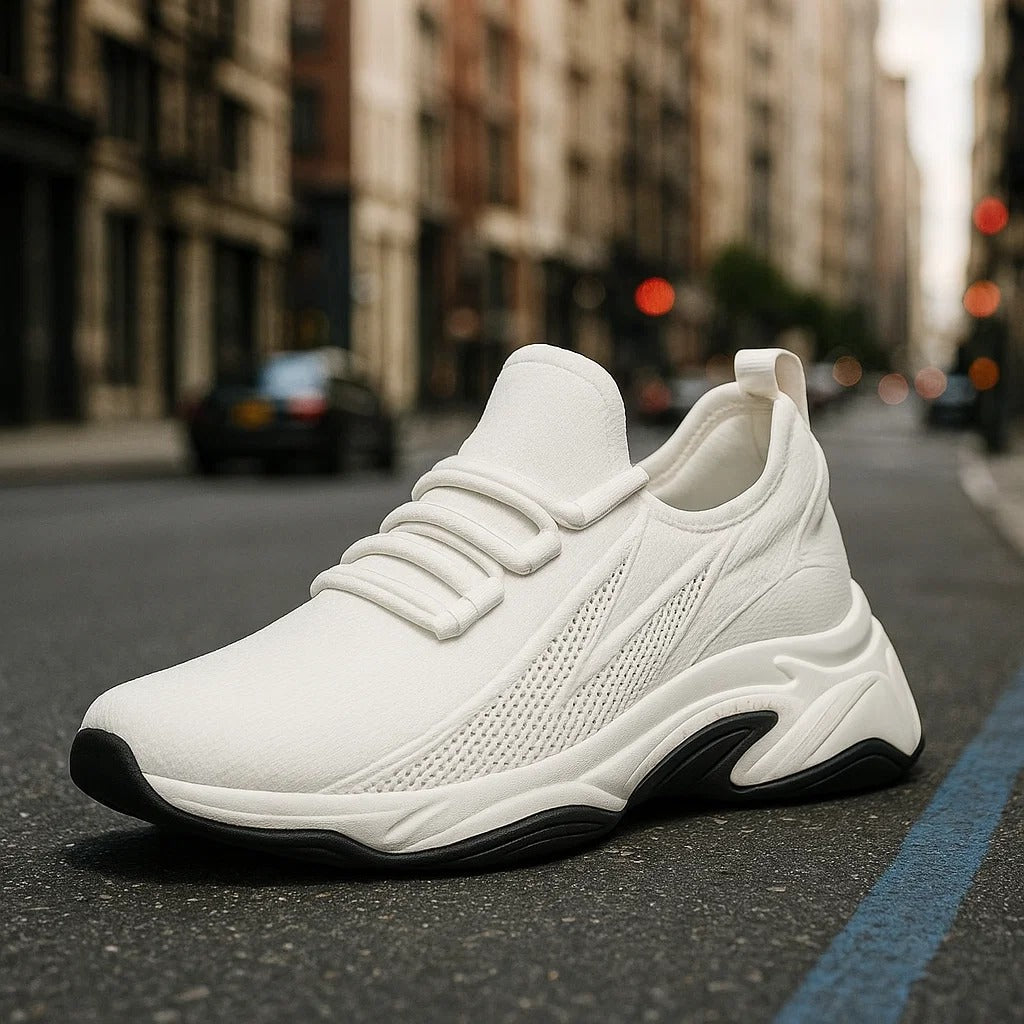 Gracias a la elevación integrada, ganarás altura sin que nadie lo note. La construcción discreta garantiza que los zapatos se vean como zapatillas normales en el exterior, mientras que tú te beneficias de una tecnología inteligente en el interior.